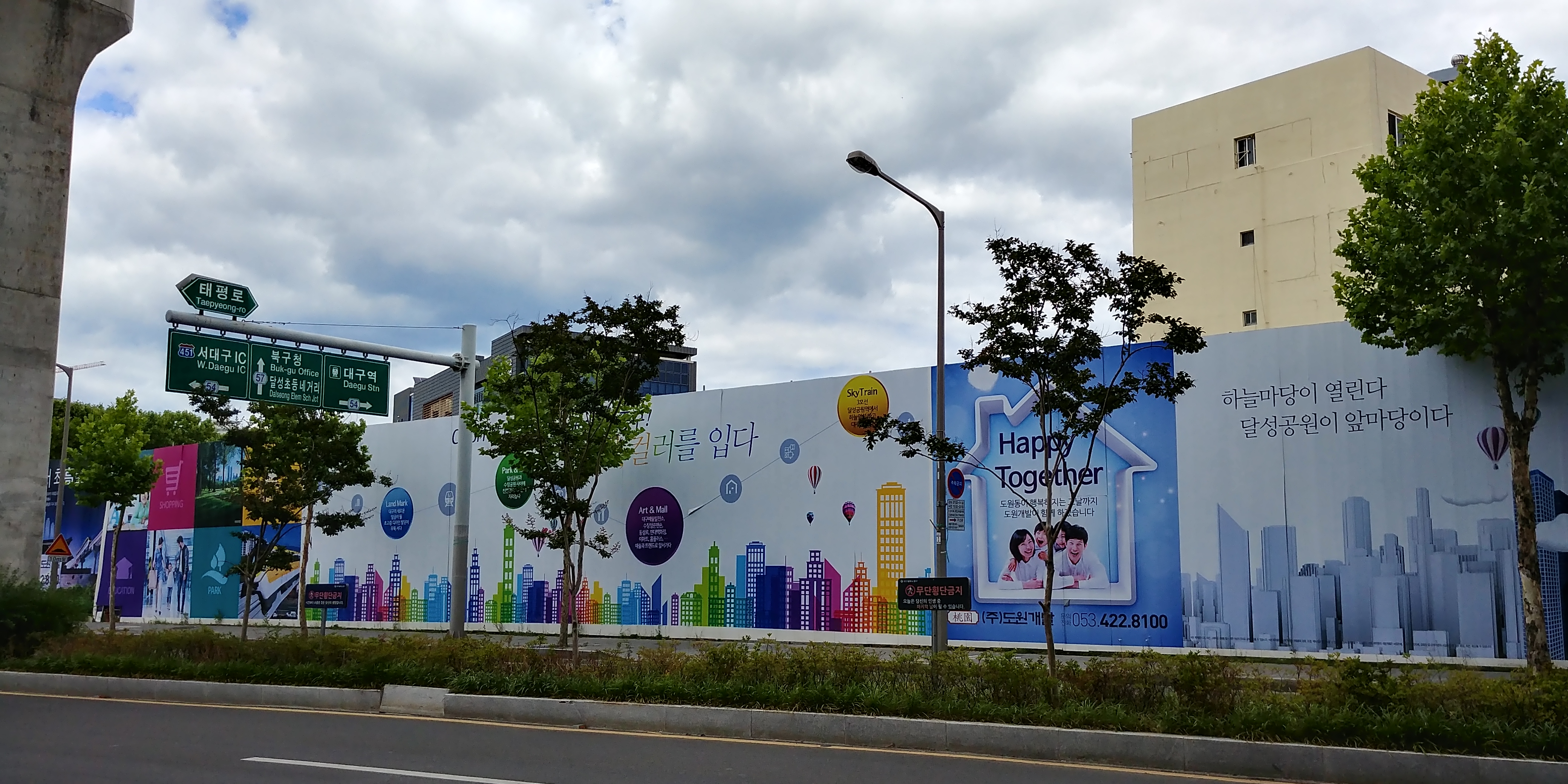 자갈마당이 한 걸음 앞이다. 도심 재생 사업 공사가 한창이다. "하늘마당이 열린다. 달성공원이 앞마당이다" 공사장 가림 안전막에 쓰인 홍보 글이다. 문득 - 예전에 극장 쇼로 명성을 떨쳤던 동아극장, 그 뒤로 도원동과 담배 만들었던 연초 제조창(전매청)이 있고, 길 건너 북편으로 미군 부대 창고(보급창?), 그 너머 동서로 뻗은 경부선 기찻길, 극장 옆은 국수 공장(소표 국수?), 달성 파출소, 금수 세탁소, 사람이 차단기를 올렸던 원대 건널목, 짠내 허기를 달랬던 달성시장 난전 골목 - 왁자지껄한 사람들의 소리가 사라졌다.
