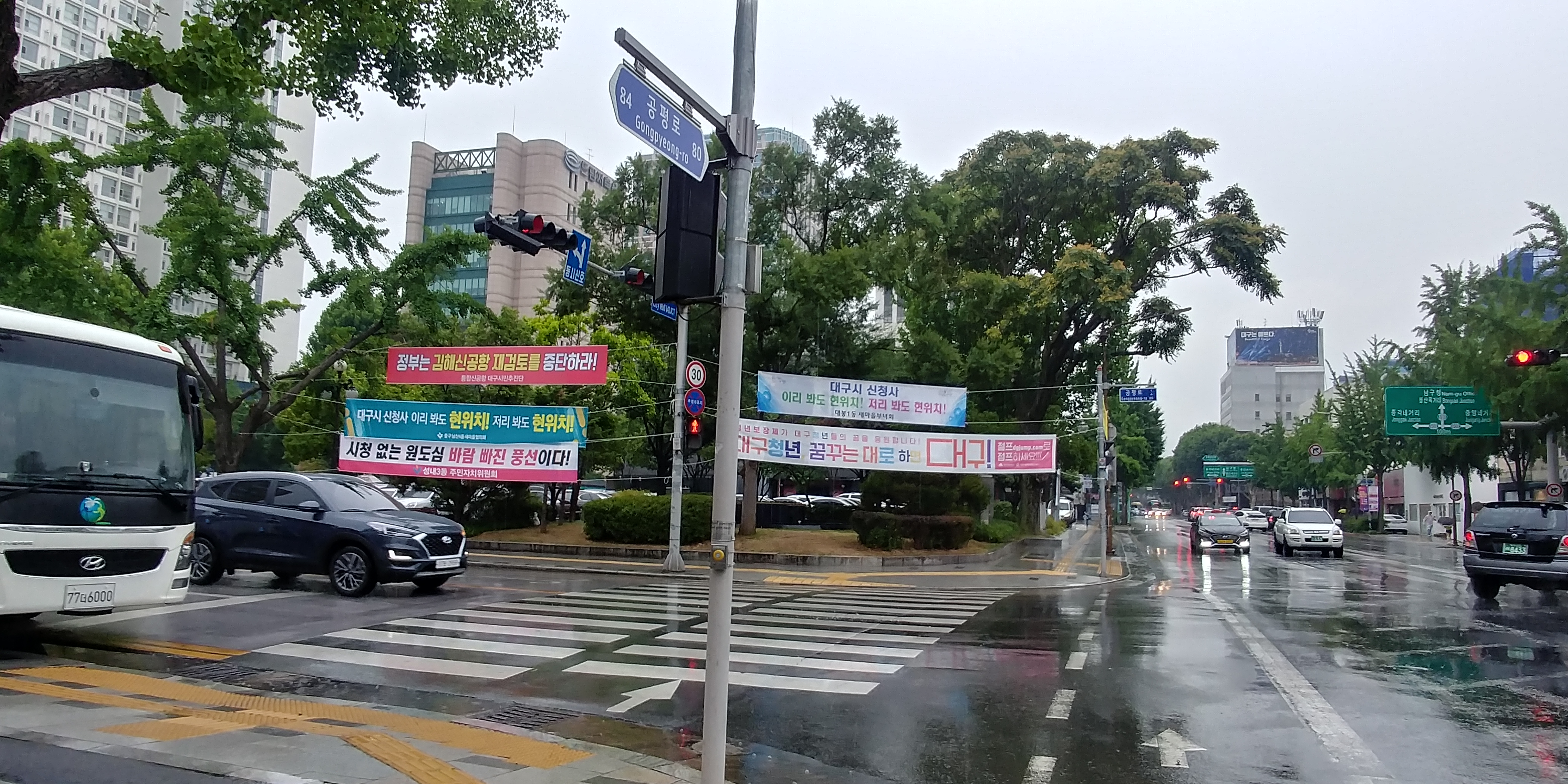 복개도로를 따라 달성공원 쪽을 걸어서 달성동 골목으로 다시 들어갔다. 도심의 단독 주거지는 대부분 재개발로 몸살을 앓고 있다. 이곳 역시 피해갈 수 없는 상황이었나 보다. 빈집마다 출입금지 딱지가 붙어 있었다. 곳곳에 찬반 의견 현수막이 내걸려 있기도 한 걸 보아서 갈등이 남아있는 모양이다.