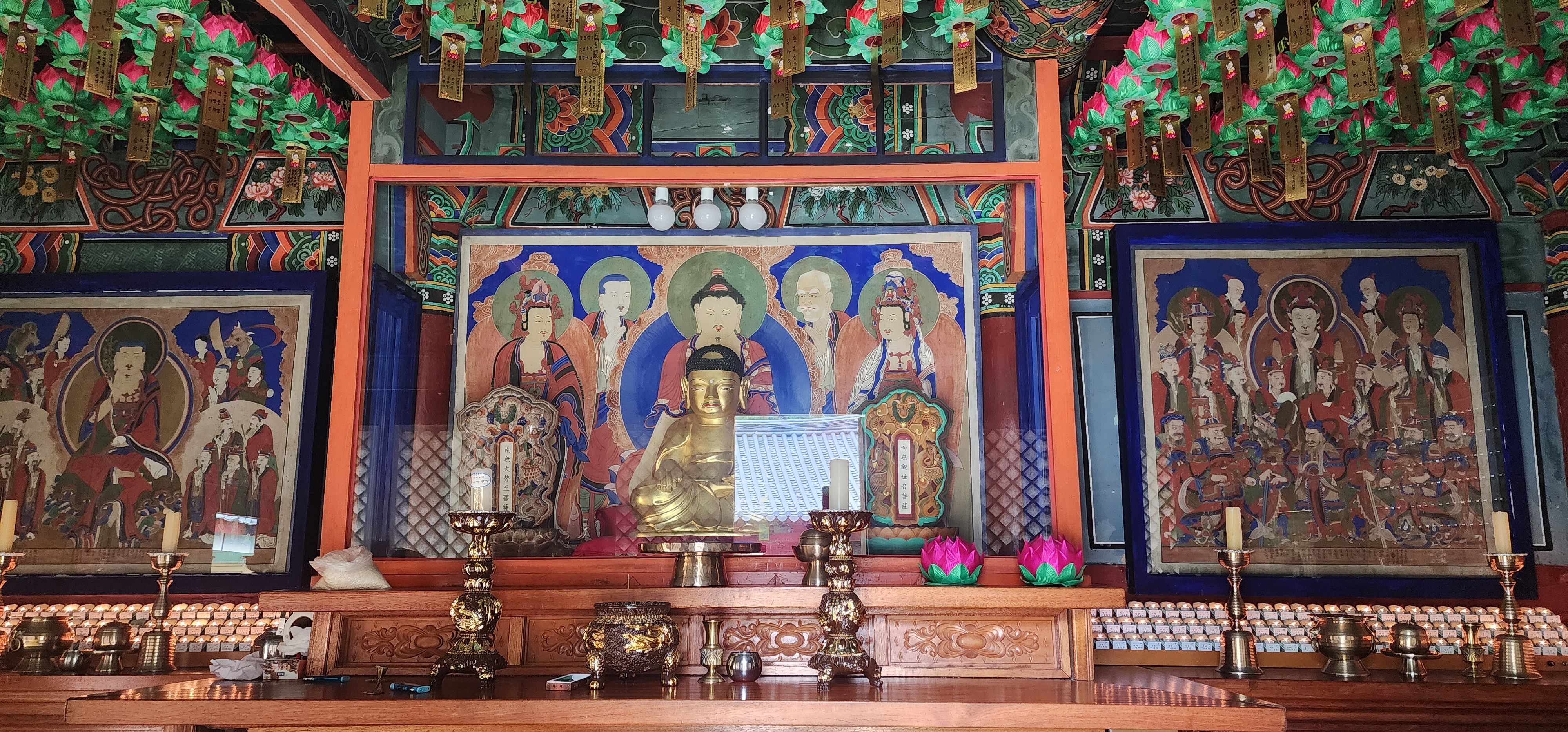 대웅전에 들어 아미타 부처님께 삼배의 예를 올렸다. 산사는 인기척 없이 고요했다. 다만, 예전에 없었던 목줄이 풀어진 멍멍이가 컹컹거리면서 다가와, 뒤편의 부도는 포기하고 돌아섰다.