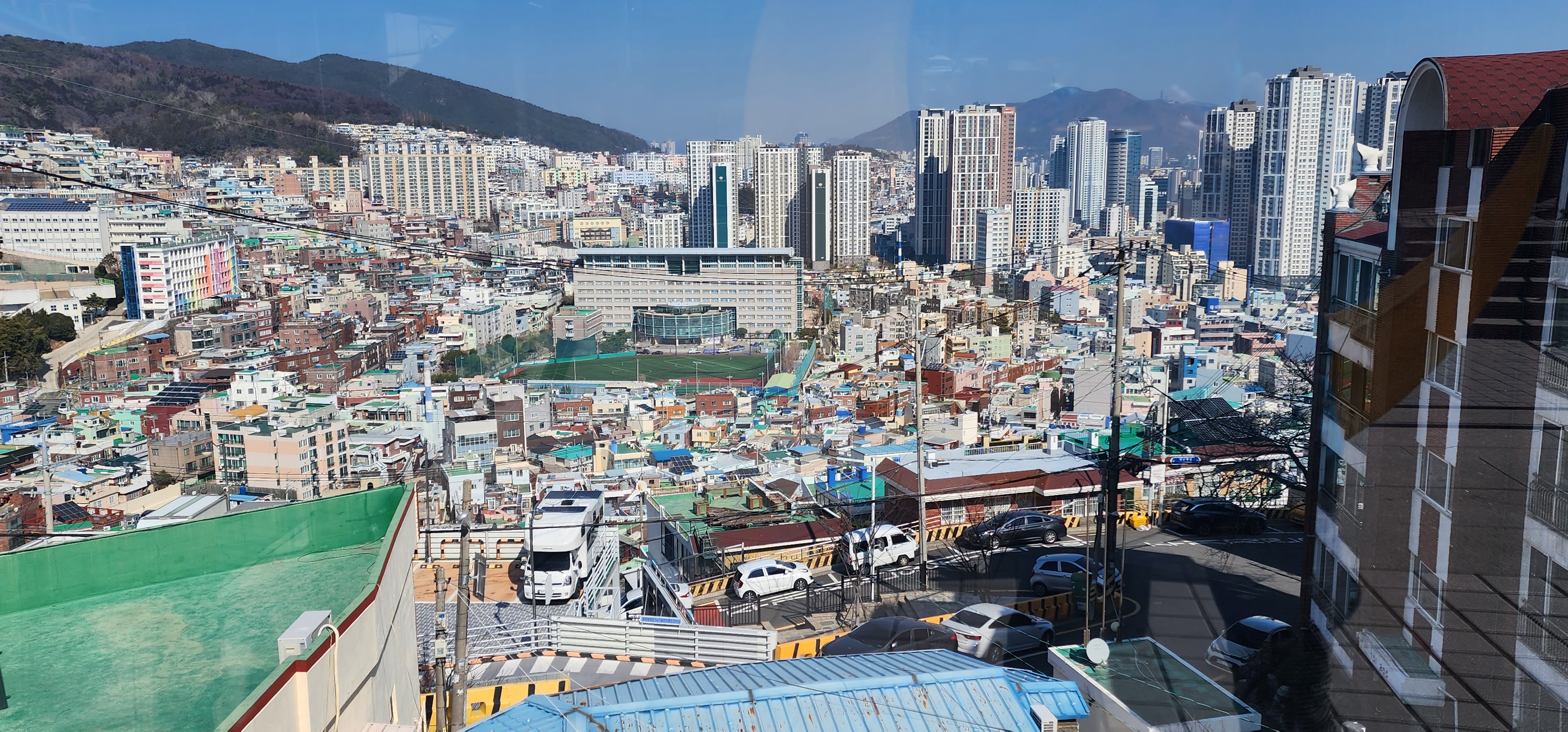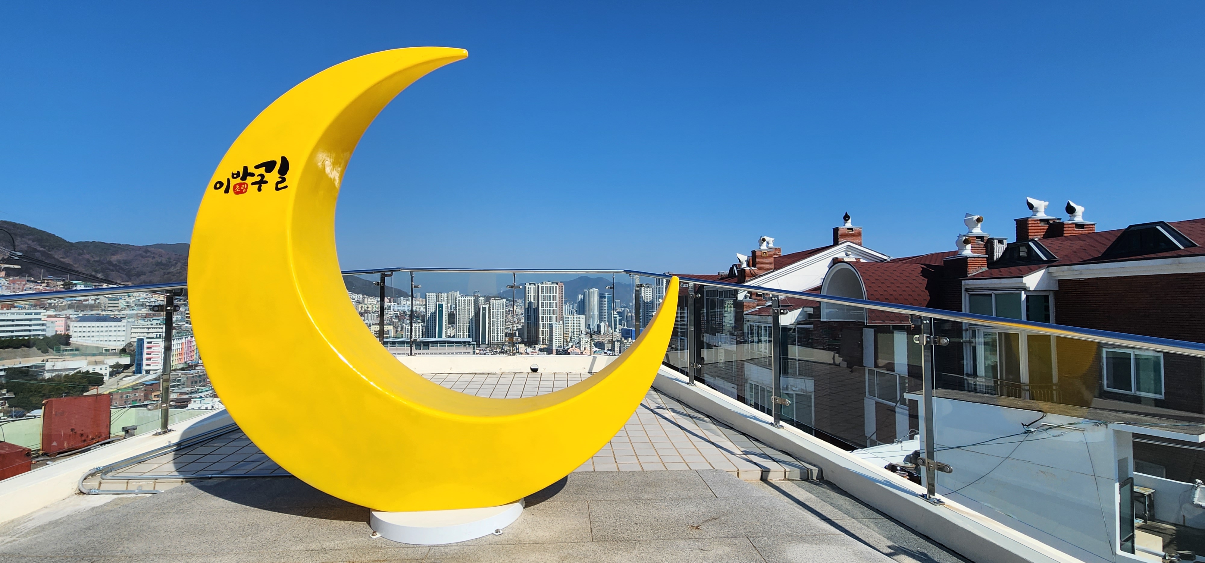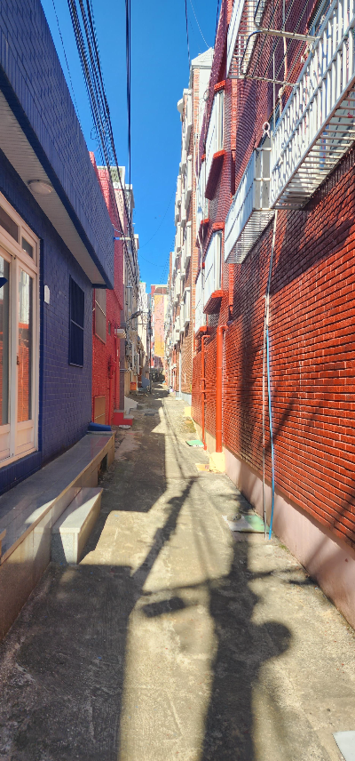 부산역을 출발하여, 동대신2동 버스정류장에 30여 분을 달린 끝에 내렸다. 닥밭 골 벽화 마을은 100m 정도 뒤돌아서야 했다. 벽화마을로 내려서는 골목이 있고, 옆에는 엘리베이터가 설치되어 있었다. 왼쪽 길 건너편으로 소망 계단이 보였다. 2인 탑승, 현수식 모노레일이다. 192 계단을 올라야하는 노약자를 위해 2022년도에 개통되었다 한다.