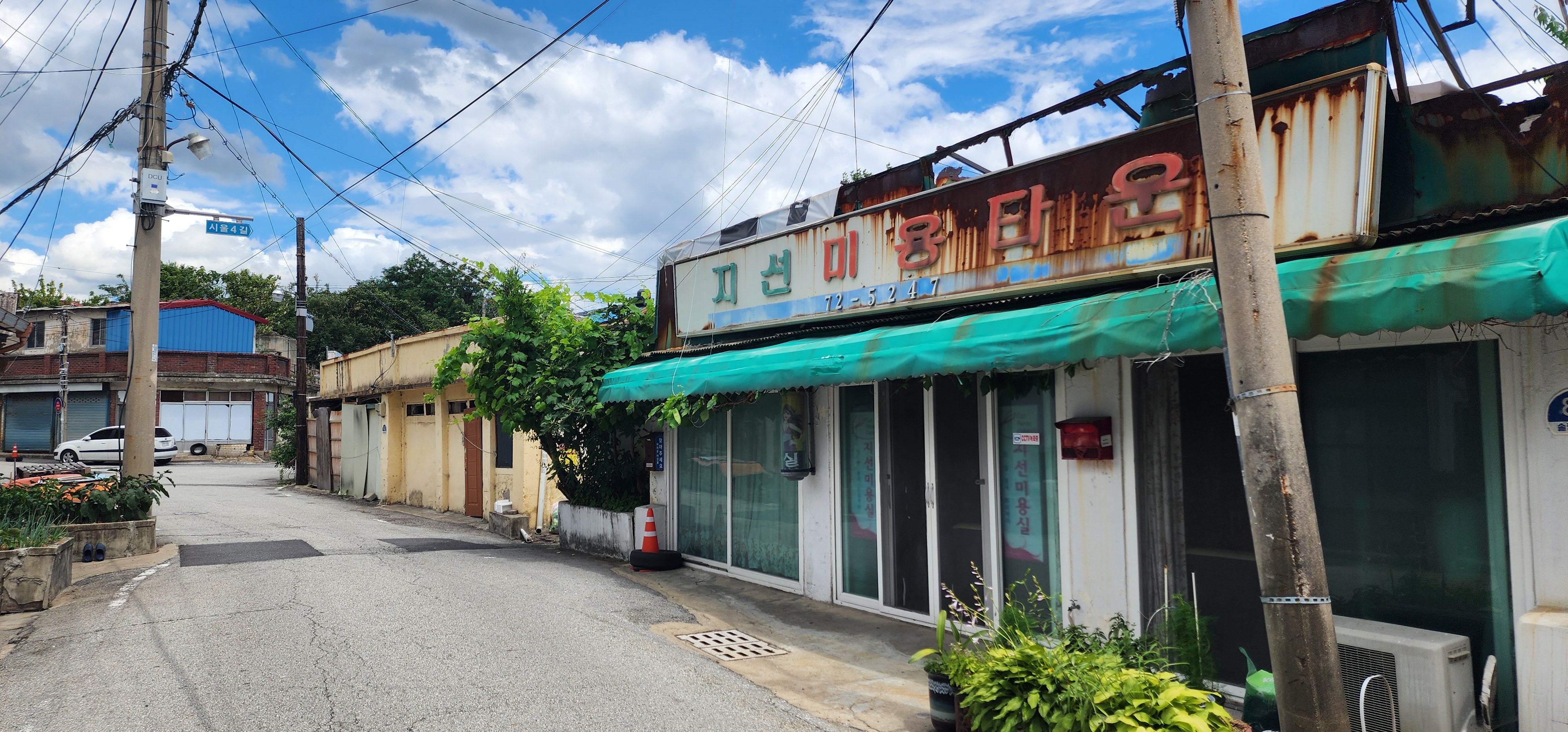우성 중/고등학교 정문을 지나 소제동 중앙 이용원이 있는 쪽 네거리를 넘었다. 중앙 이용원 골목에서 동서교 위쪽으로 이어진 골목을 따라 동서교와 철갑교를 건너 소제동 철도관사 골목을 다시 찾을 생각이다. 관사 16, 17, 24호를 다시 찾아보고, 두충나무가 있는 51호 관사 뒤편 삼성동 골목도 새로 걸어볼 셈이다. 골목을 돌고 돌아 돼지슈퍼 옆 골목에서 간판을 내린 중앙 이용원을 만났다. 하지만, 일대 소제동은 북쪽의 정보길, 동쪽과 남쪽으로 이어진 동중앙로, 서편의 계족로에 안 지역은, 집을 헐고 평탄 작업으로 가림막이 둘리어 있다.긴 골목은 진작에 사라지고 없다. 가림막 안쪽을 기웃거리다 보면 진수 2길13. 송자고택이 위리안치되어 있다.