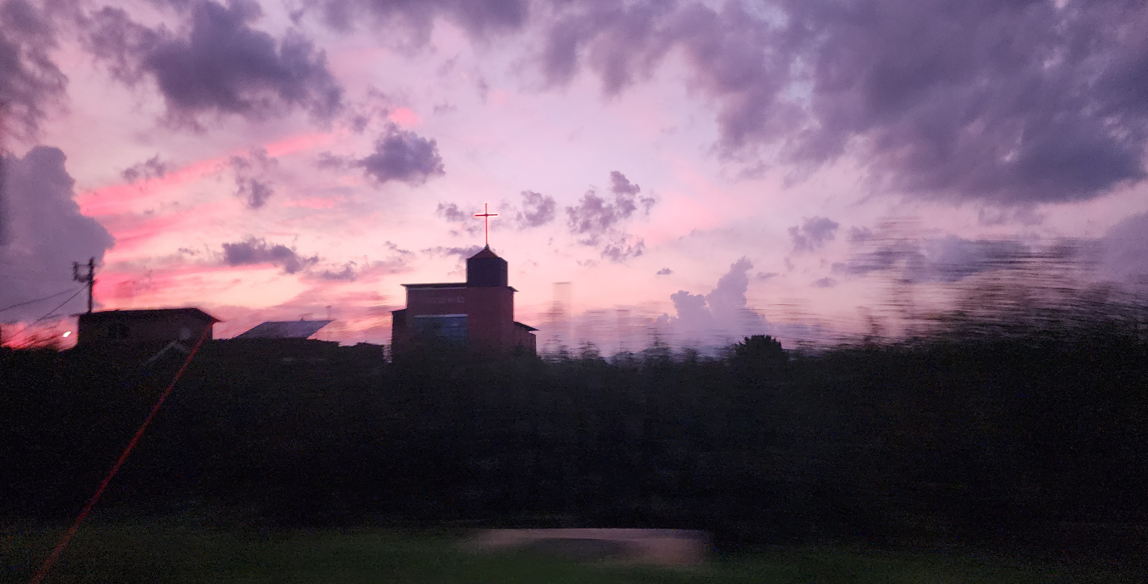 고향집에 들러서 마당에 웃자란 풀과 씨름을 하고 대구로 들어왔다. 그렇게 뜨겁던 열기와굵은 빗줄기가 걷힌 하늘에는, 저녁노을이 붉게 물들었다. 한 10여 년쯤 미국 '로스케를 리아 더힐' 은별이네! 집으로 갔을 때, 서쪽 하늘을 아름답게 물들인 노을을 지역 방송국에서 방영했듯이, 연꽃이 만발한 연지 (진못) 위로 내려앉는 노을이 황홀했다. 옛 어른들의 말에 의하면, 저녁 노을이 붉으면 날씨가 덥다는데, 폭염이 다시 심술을 부릴는지도 모르겠다. 청도 여정을 마무리했다.