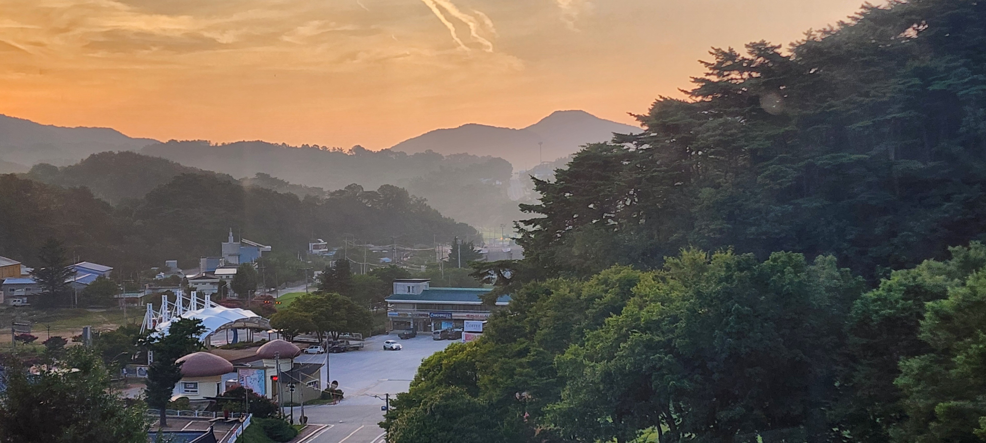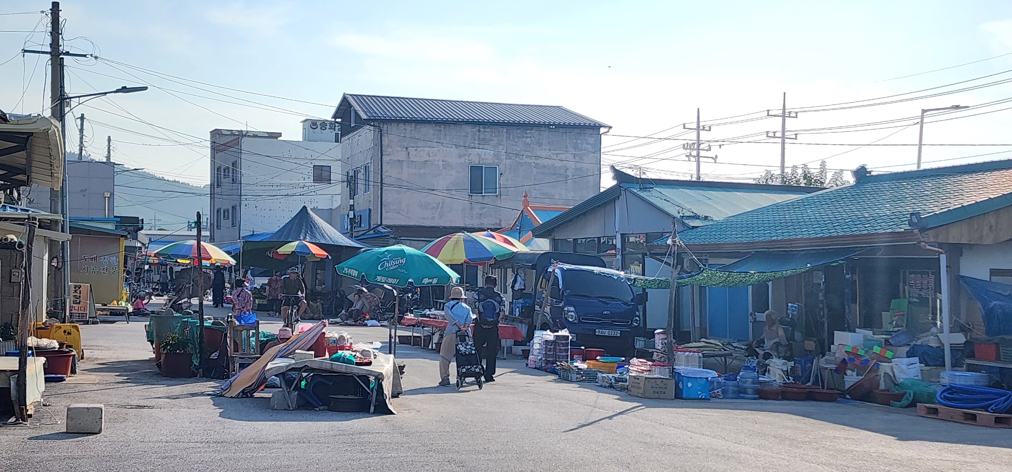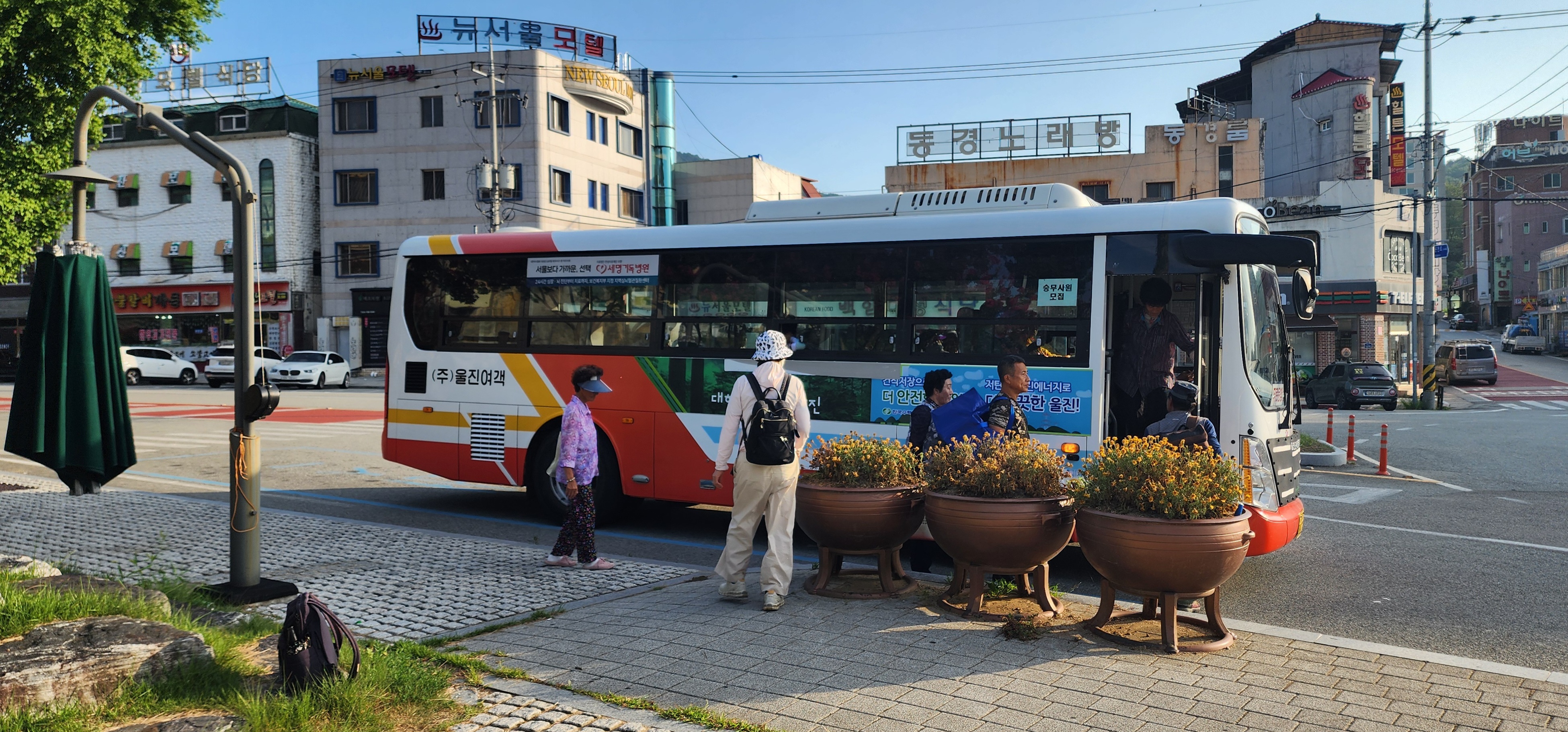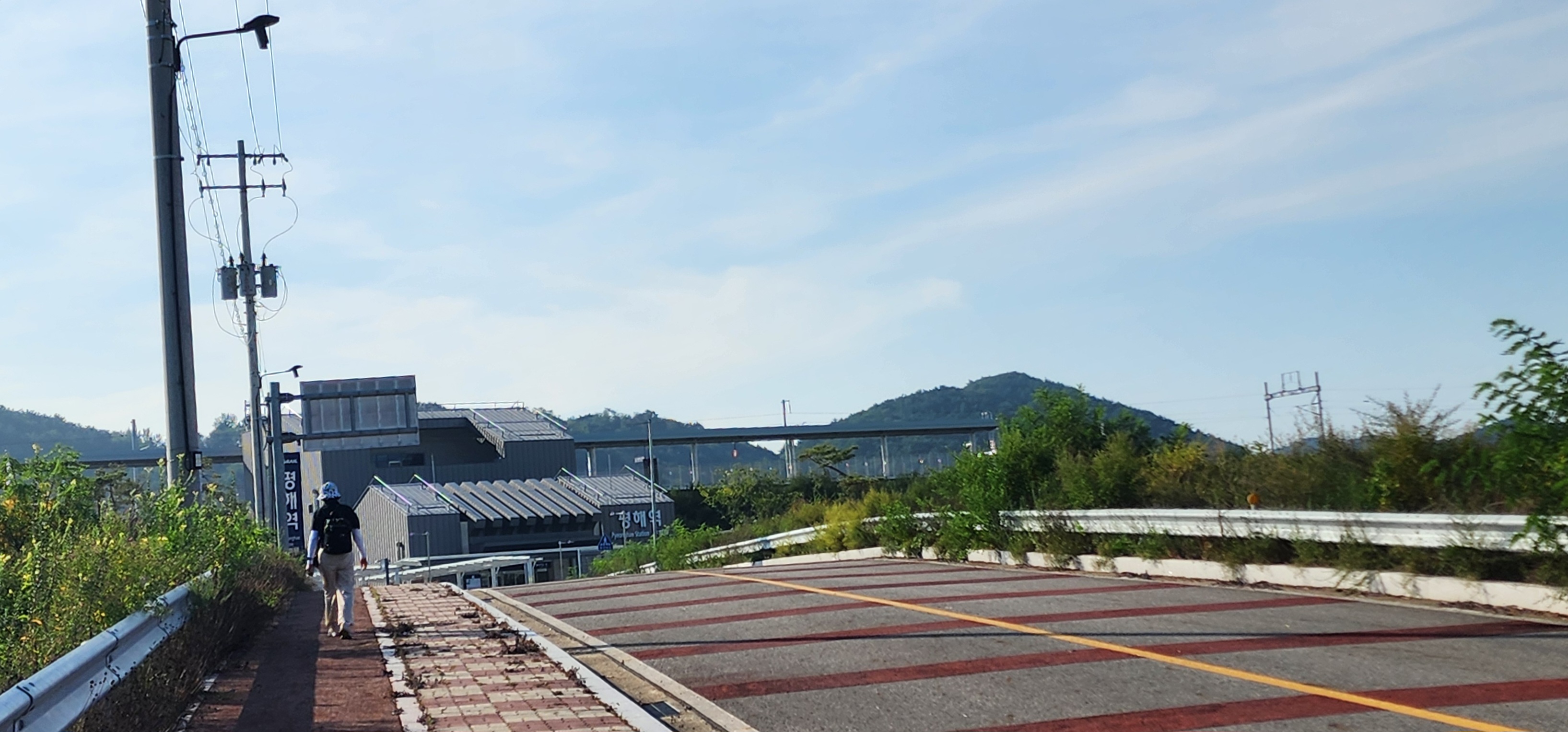 이튿날 아침, 여명이 아침 안개를 뚫고 동쪽 하늘로 솟아올랐다. 온정면 소태리에서 평해로 나가는 07시 20분 첫 버스를 기다린다. 첫차는 평해에서 선구리로 들어갔다 돌아 나오는 30인승 농어촌 마을버스로 운임이 무료다. 몇 정거장 안 거쳤음에도 자리가 꽉 들어찼다. 오늘이 평해 장날이라서 인지도 모른다. 아침 8시가 못 되었음에도 이곳저곳에서 점포가 꾸려지고 물건들을 진열하고 있었다. 주먹보다 큰 복숭아가 먹음직스러웠다. 들판 가운데 우두커니 솟구쳐 오른 건물이 동해선 평해 역사다.
