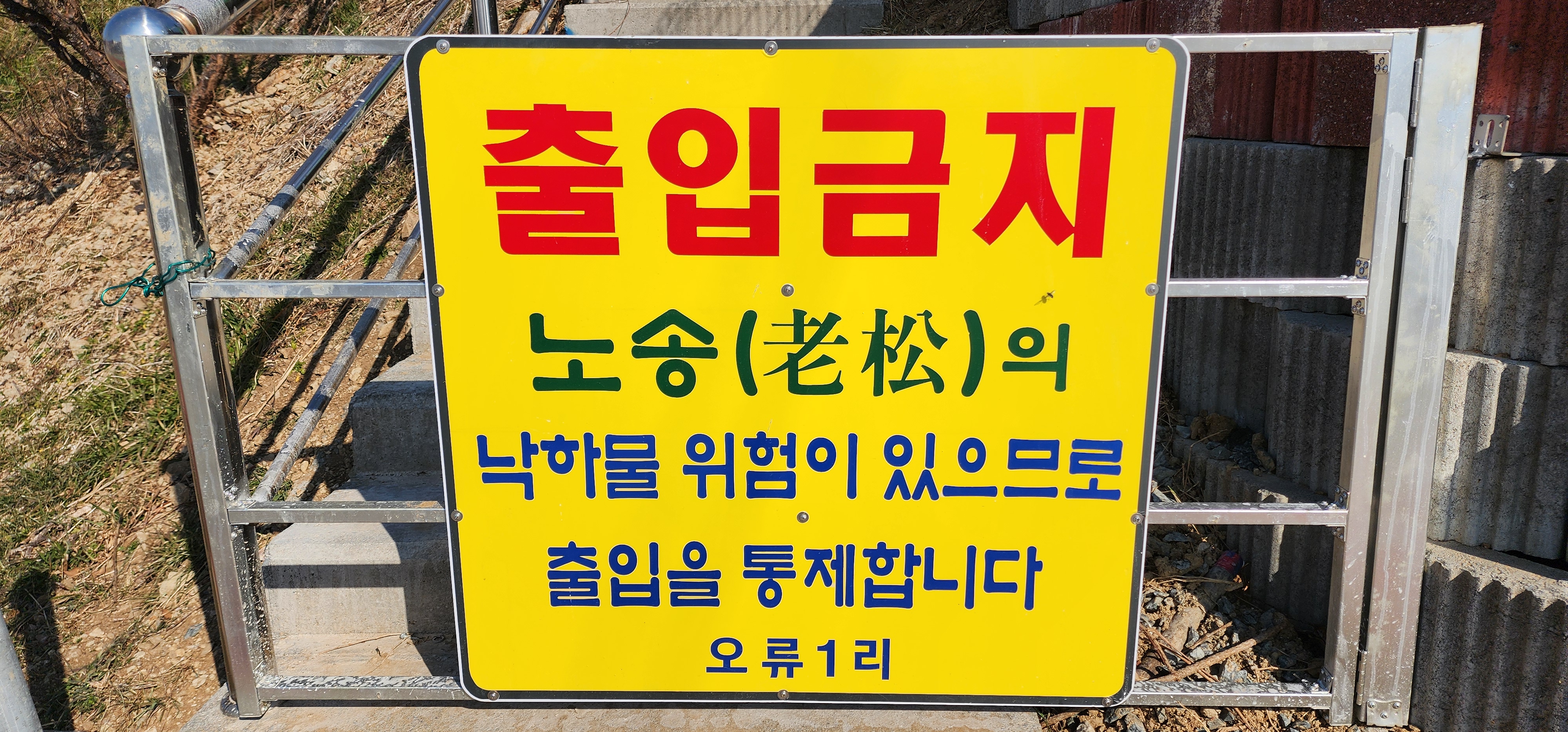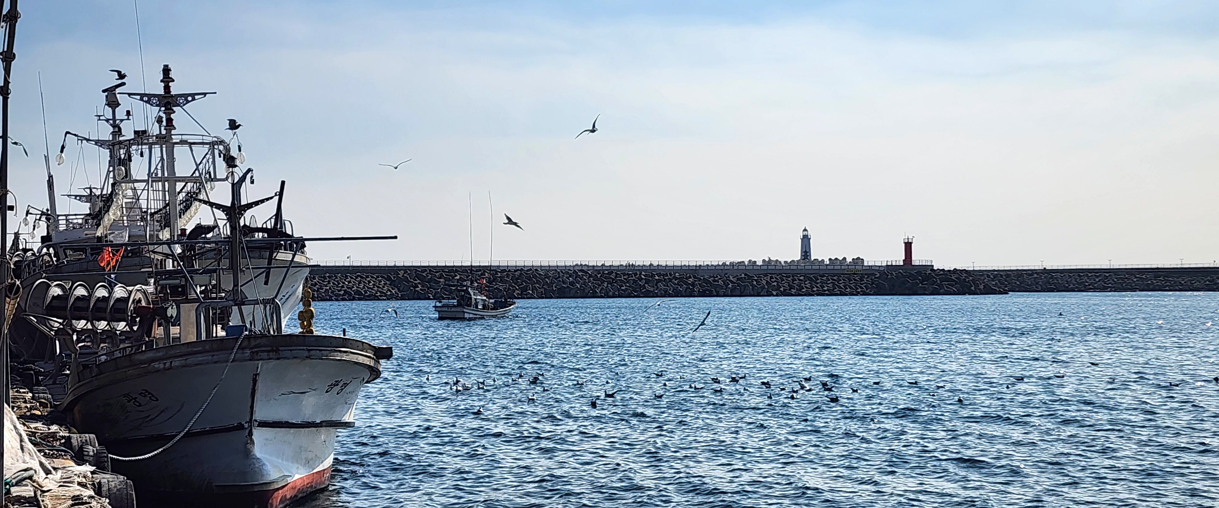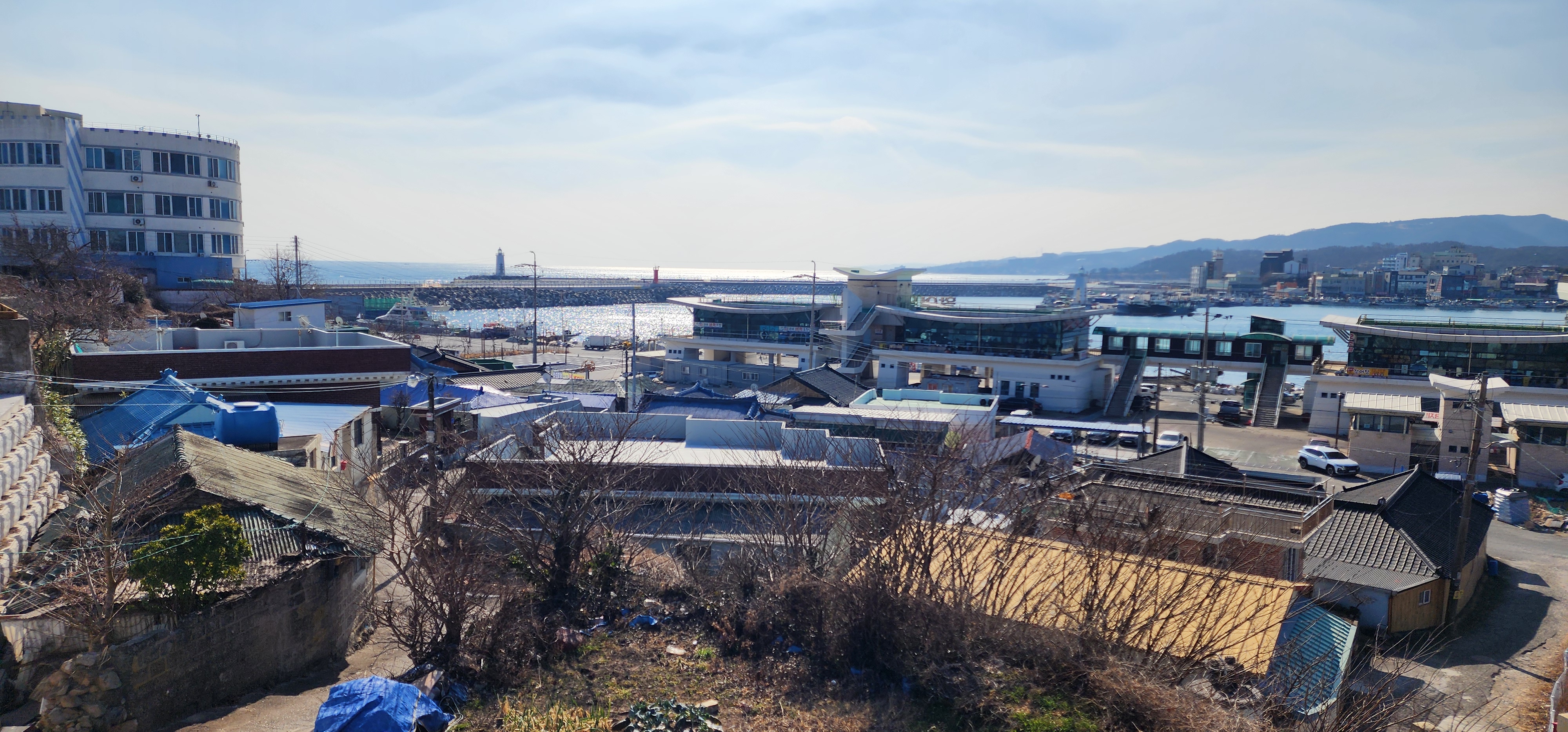 감포읍 내, 예약한 식당으로 들어섰다. 날씨가 무척 포근했다. 감포항 바다는 물결이 잔잔했다. 뱃전엔 많은 배들이 닻을 내리고 있었다. 연안항에서 어항으로 바뀌었지만, 일대 작은 포구에 비하면 감포는 큰 항구다. 활어회 건물 뒤 언덕배기에 당산나무와 제당이 눈에 들어왔다. 벽화가 그려진 좁은 골목으로 해서 제당으로 올라갔다. "선창 제당, 할배, 할매"라는 이정표가 세워져 있었으나, 출입이 금지되어 있었다. 당산나무(곰솔)가 재선충으로 고사해 위험을 초래하고 있었다.